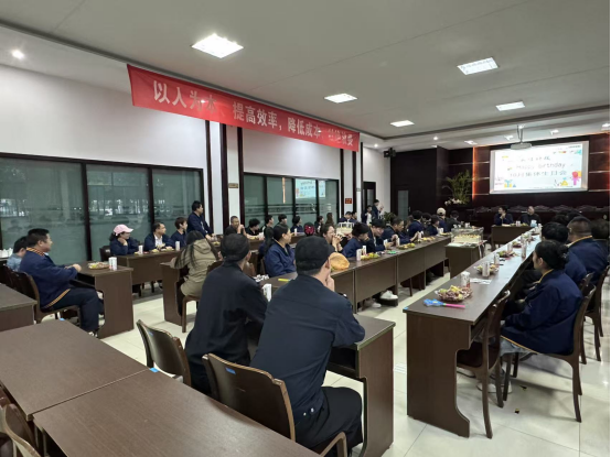 隨著歡快的音樂響起,生日會正式拉開帷幕。常務副總黃總攜手各位領導為大家送上了真摯的生日祝福,溫暖的話語讓現場氛圍愈發(fā)濃厚。隨后,大家圍聚在一起,為壽星們共唱生日歌,熟悉的旋律在會場中回蕩,溫馨的氣息感染著每一個人。緊接著,壽星們閉上眼睛,默默許下心中美好的愿望,然后一同吹滅蠟燭,將此刻的美好與期許定格。